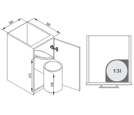 - Automatycznie wysuwający się kosz na śmieci, montowany do boku szafki.