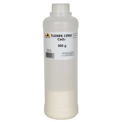 Tlenek ceru to doskonały środek do polerowania szyb, szkła, reflektorów. Tlenek ceru CeO2 to biały, lub lekko kremowy proszek, który po wymieszaniu z wodą stosuje się do usuwania rys, lub polerowania szkła. Za pomocą tlenku ceru w bardzo łatwy sposób można usunąć rysy i inne uszkodzenia pojawiające się na powierzchni szkła. Wystarczy kilka minut, by przy użyciu zwykłej wiertarki, filcowego krążka i tlenku ceru przywrócić szybie idealny połysk, bez zarysowań. Przed zastosowaniem należy wymieszać tlenek ceru z wodą w proporcjach 1:1. Powstałą pastę nałożyć na krążek polerski i polerować powierzchnię w celu uzyskania pożądanego efektu. Pastę na krążku można zwilżać, aby zapobiec jej wysychaniu. Najlepszy efekt uzyskuje się w przypadku niewielkich rys.