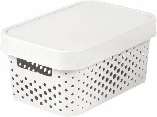 Seria pojemników Infinity to gwarancja porządku i to w dobrym stylu. Przechowamy w nim zapasy żywności, ubrania, książki, dokumenty. Słowem: absolutnie wszystko! Prezentowany pojemnik posiada przykrywkę o gładkiej powierzchni oraz ażurową strukturę, dzięki której możliwa jest ciągła cyrkulacja powietrza. Projektanci nadali pojemnikowi prosty, ale niebanalny kształt. Można je ustawiać jeden na drugim w dowolnej kombinacji. Idealnie komponuje się ze skandynawskim aranżem wnętrz.