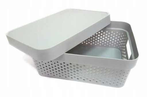 Seria pojemników Infinity to gwarancja porządku i to w dobrym stylu. Przechowamy w nim zapasy żywności, ubrania, książki, dokumenty. Słowem: absolutnie wszystko! Prezentowany pojemnik posiada przykrywkę o gładkiej powierzchni oraz ażurową strukturę, dzięki której możliwa jest ciągła cyrkulacja powietrza. Projektanci nadali pojemnikowi prosty, ale niebanalny kształt. Można je ustawiać jeden na drugim w dowolnej kombinacji. Idealnie komponuje się ze skandynawskim aranżem wnętrz.