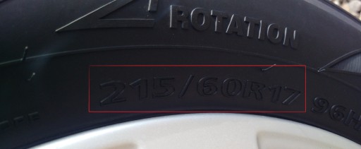 2. Podaj rozmiar z opony. (przykład obok)