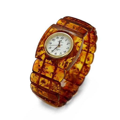 Zegarek wykonany z rekonstruowanego naturalnego bursztynu bałtyckiego.