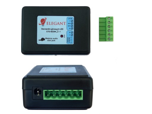 Programy dynamicznej zmiany kolorów na taśmie RGB Magic dzięki temu sterownikowi mogą działać w rytm muzyki. Sterownik ma wejście dźwięku (mini jack). Wbudowany procesor rozdziela muzykę na basy,tony średnie i soprany (dotyczy części efektów). Sterownik muzyczny automatycznie wykrywa tempo utworu oraz dostosowuje swoją czułość do głośności. Część efektów reaguje na poszczególne dźwięki muzyki (tony niskie, średnie i wysokie) a część reaguje na tempo utworu (rytm). W pamięci sterownika są też efekty bez reakcji na muzykę (np. stały kolor, stroboskop czy gwiazdy). Aby sterownik reagował na muzykę należy do niego podłączyć źródło dźwięku używając przewodu z wtyczką mini jack (taka jak od wiêkszości słuchawek).
