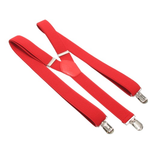 Metalowe klamry mocno trzymają spodnie.
