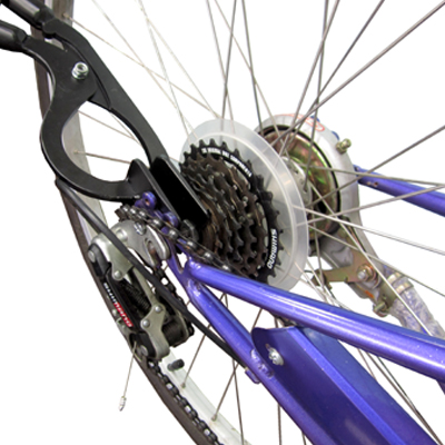 PRZYRZĄD TB-RT05 ZOSTAŁ ZAPROJEKTOWANY Z MYŚLĄ O ZAOSZCZĘDZENIU MASY CZASU PRZY WYMIANIE OPON I DĘTEK TYLNEGO KOŁA - POZWALA WYCIĄGNĄĆ OPONĘ/DĘTKĘ BEZ CAŁKOWITEGO DEMONTAŻU KOŁA Z RAMY ROWERU.