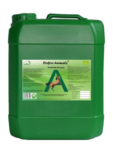 Probiotyk dla koni Doktor Animals – probiotyczna mieszanka paszowa uzupełniająca (MPU) w płynie, na bazie żywych kultur bakterii fermentacji mlekowej i ziół.