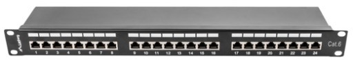 Patch panel teleinformatyczny został zaprojektowany do wykorzystania w głównych i pośrednich punktach dystrybucyjnych w szybkich sieciach teleinformatycznych. Jest pasywnym elementem okablowania strukturalnego stosowanym do zakańczania i organizowania kabli typu skrętka w szafach rack 19". Patch panel wyposażony jest w 24 ekranowanych portów RJ-45 kategorii 6. Zastosowanie złącz IDC/LSA zapewnia łatwy i szybki montaż. Usztywniona półka wraz z uchwytami zapewnia łatwą organizację kabli i stabilność montażu.