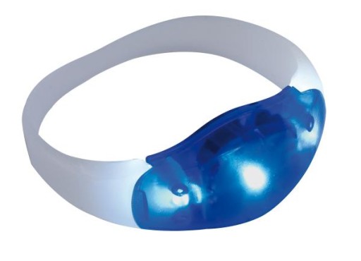 Niezwykle użyteczna świecąca opaska na rękę Festival z trzema diodami LED oraz dwoma trybami śwecenia (światło ciągłe i miganie). Dodatkowo mlecznobiała taśma silikonowa świeci w ciemności.
