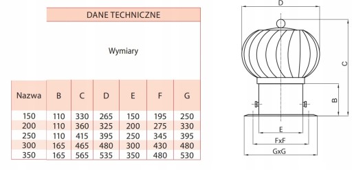 OBROTOWA NASADA KOMINOWA FI 150 NA KOMIN 5 LAT