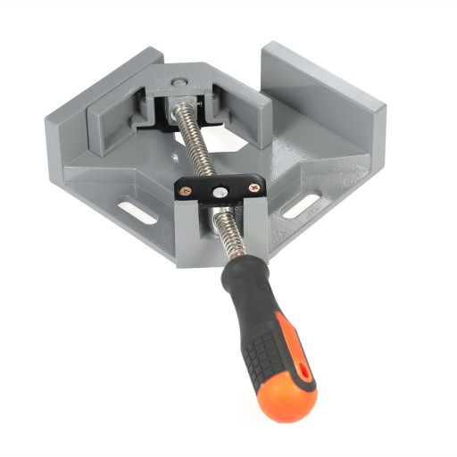 Ścisk do precyzyjnego mocowania elementów pod kątem prostym. Znajduje zastosowanie przy sklejaniu, skręcaniu, nawiercaniu i spawaniu. Obrotowa szczęka zapewnia docisk elementów o różnych grubościach. Solidna konstrukcja odlewana ze stopów aluminium, ze stalowym, chromowanym wrzecionem z gwintem trapezowym i ergonomiczną, gumowaną rękojeścią. Możliwość przymocowania do stołów warsztatowych. Niezastąpiona "trzecia ręka" każdego majsterkowicza.