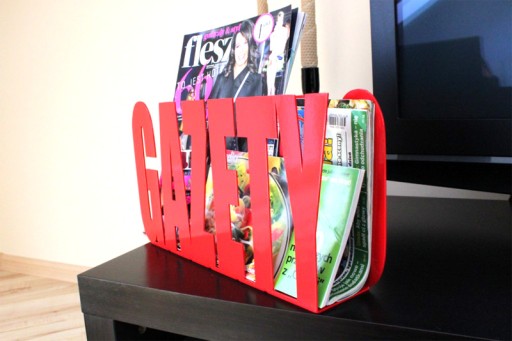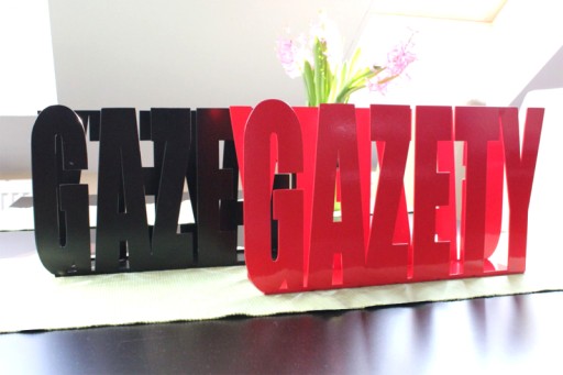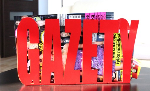 Ciekawy i stylowy stojak na gazetnik "GAZETY"