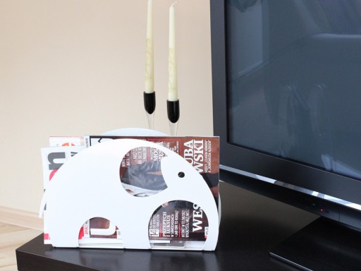 Gazetnik słoń, bardzo ciekawy i designerski dodatek spełniający swoją funkcję - przytrzymuje gazety, reklamówki i inne rzeczy do czytania.