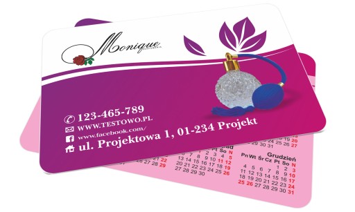 Jako wykończenie proponujemy folię błyszczącą którą pokryjemy obie strony kalendarzyków. Dopełnieniem będzie zaokrąglenie narożników.
