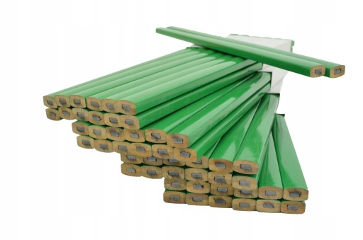- klasyczne, murarskie, drewniane ołówki o płaskim kształcie powleczone zielonym lakierem,