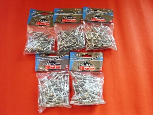 - Solidniewykonane nity aluminiowe po 50 sztuk w paczce w rozmiarach: