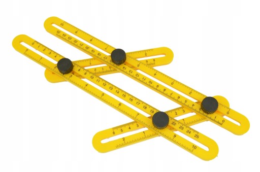 - Praktyczny kątownik- szablon, przyrząd pomiarowy, do precyzyjnego odwzorowywania kątów i wymiarów podczas prac remontowych, budowlanych, wykończeniowych i dekoratorskich.