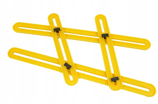 - mm połączone wkrętami blokującymi umożliwiają swobodne dopasowanie do mierzonych kątów, łatwe zablokowanie uzyskanego kształtu i przeniesienie wymiarów na przycinany materia