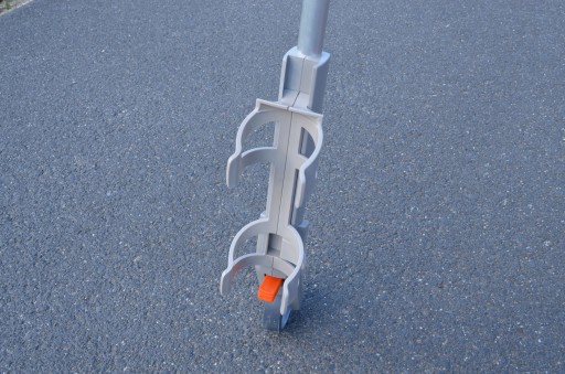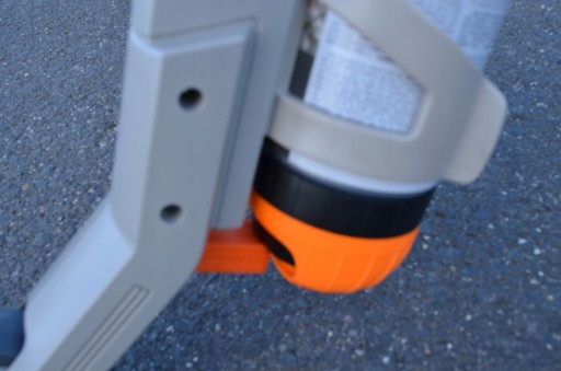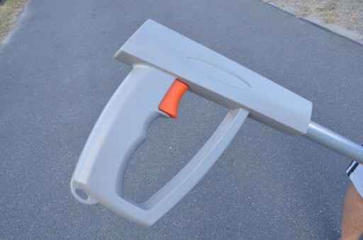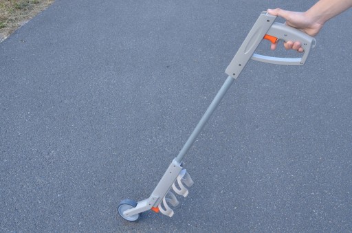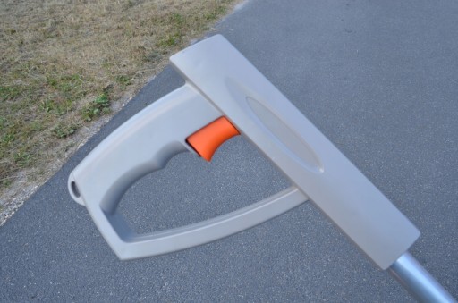 - Uchwyt wyposażony jest w gumowe koło i wygodny uchwyt oraz przycisk w rącze uruchamiający farbę w spreju.