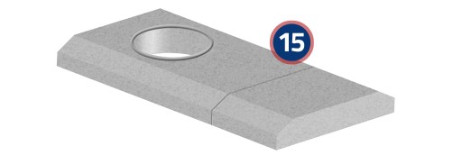 Płyta kominowa betonowa (15) - zapewnia swobodny ruch wkładów ceramicznych podczas eksploatacji komina oraz zabezpiecza komin przed warunkami atmosferycznymi. Niezastosowanie naszej czapki lub samodzielne i niepoprawne wykonanie jest często przyczyną wielu reklamacji (wkłady ceramiczne muszą mieć możliwość swobodnego wydłużania się podczas pracy komina). Wymiar płyty dostosowany jest do zamówionego systemu kominowego.