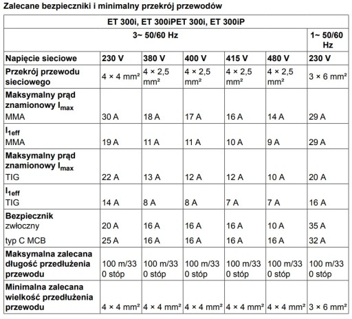 Urządzenie może być podłączone do sieci trójfazowej o napięciu od 208V do 528V oraz do sieci jednofazowej o napięciu 230V.