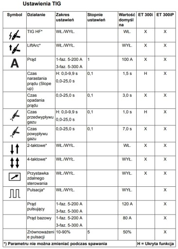 Dostępne są dwie wersje z funkcją PULSE do spawania cienkich blach, jak i bez tej funkcji.