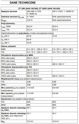 Instrukcja obsługi w języku polskim spawarki Esab Renegade ET 300P