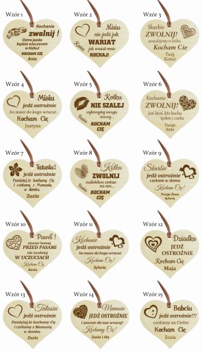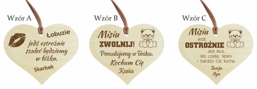 - zwrot na zawieszce, np. Skarbie, Kotku, Kochanie, Misiu (na górze serduszka)