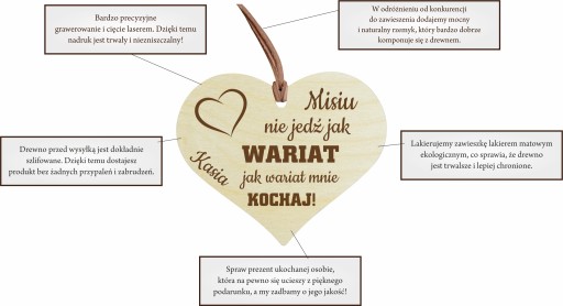 Dodatkowo zawieszka jest szlifowana co zapewnia wyższą jakość produktu oraz lakierowana ekologicznym lakierem, co sprawia, że produkt prezentuje się rewelacyjnie.