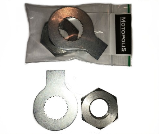 Nowa podkładka zabezpieczająca przed odkręceniem nakrętkę na wałek zdawczy skrzyni biegów (przy przedniej zębatce).
