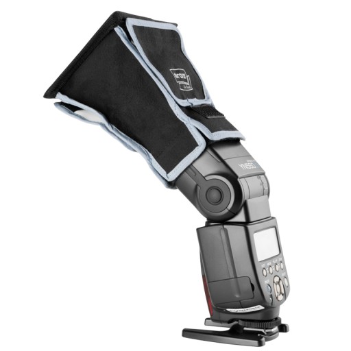 - Softbox na lampę reporterską (front 9 x 12 cm, wewnętrzna powierzchnia biała)