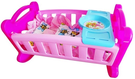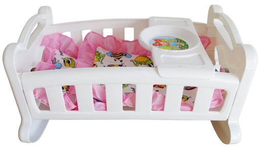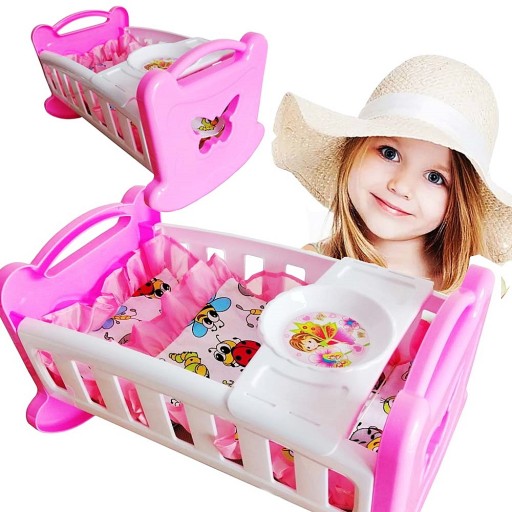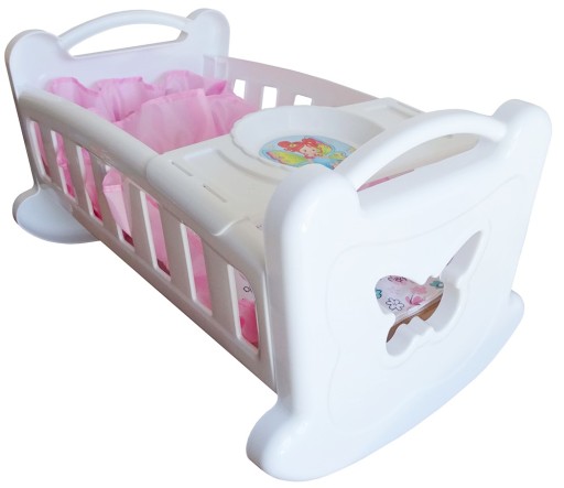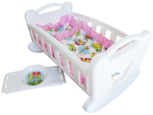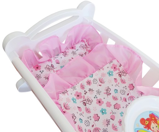 ŚLICZNA KOŁYSKA "MOTYLEK" DLA LALEK Z TACKĄ DO KARMIENIA + POŚCIEL