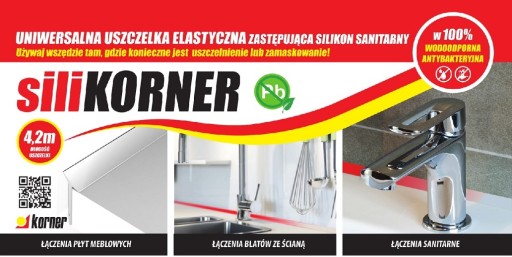 UNIWERSALNA USZCZELKA ELASTYCZNA SILIKORNER ŁATWA W MONTAŻU. ZASTĘPUJE SILIKON SANITARNY. UŻYWA SIĘ WSZĘDZIE TAM , GDZIE JEST KONIECZNE USZCZELNIENIE LUB ZAMASKOWANIE.