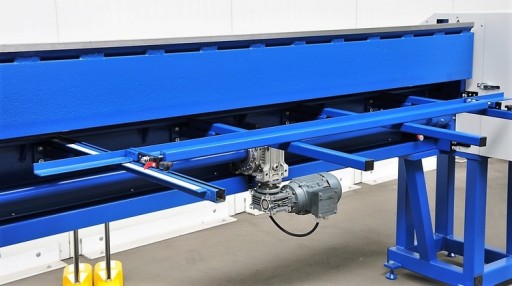 Elektryczno-mechaniczny napęd sterowany pedałami pozwala operatorowi posługiwać się obiema rękami - ruch belki dociskowej za pomocą pedałów nożnych pozwala operatorowi na dokładne oburęczne ustawienie blachy w przestrzeni roboczej zaginarki.