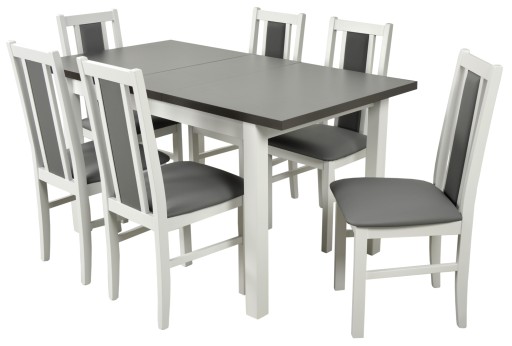 Stół M-5 biały, blat grafit + krzesła B-14 białe materiał nr.3