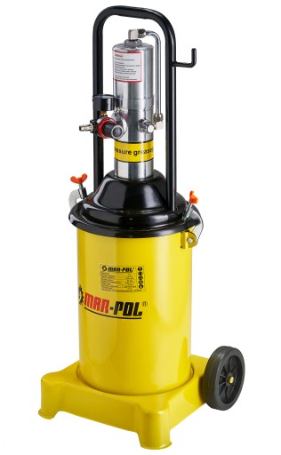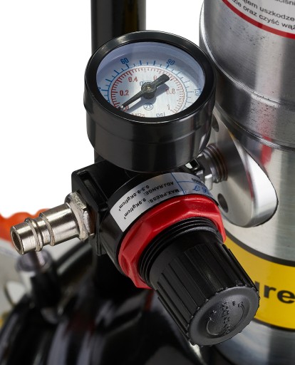Smarownica wyposażona jest w wydajną pompę pneumatyczną, którą po podłączeniu do kompresora umożliwia pracę przy smarowaniu jednej osobie (przy smarownicach nożnych potrzebne są 2 osoby do smarowania).
