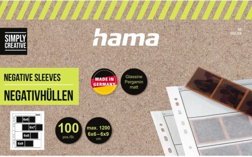 - 100 Koszulek pergamin/mat na negatywy 60-70 mm firmy Hama.