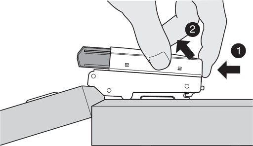 W zestawie znajduje się także prowadnik BLUM o kodzie 173L6100. Prowadnik ten ma formę krzyżakową i jest wykonany z niklowanej stali. Jest mocowany za pomocą wkrętów do płyty wiórowej. Regulacja wysokości prowadnika odbywa się poprzez podłużny otwór.