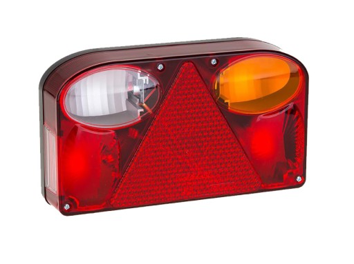 - lampy zespolone ft-088, które spełniają funkcje drogowe: światła, kierunkowskazy, pozycyjne, stop, podświetlenie tablicy, światło cofania (do podłączenia na środek wtyczki), trójkąt odblaskowy