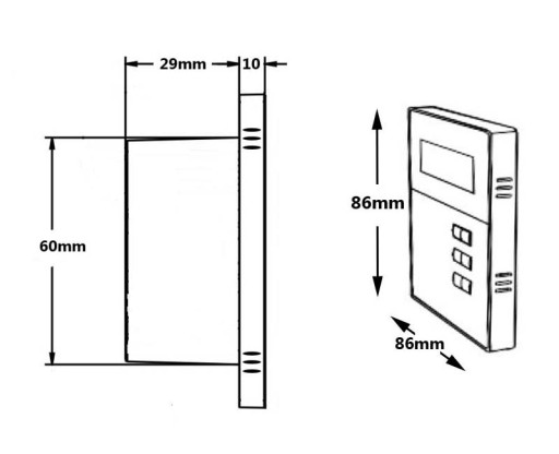 - Wymiary puszki podtynkowej: 86x86(38 - głębokość)mm