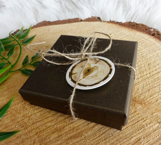 Zawieszka zapakowana w eleganckie pudełeczko.