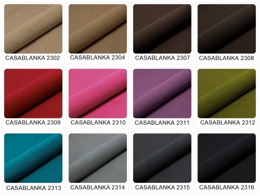 MANILA- to połączenie idealne - super miękka i przyjemna w dotyku, a zarazem wytrzymała i mocna. Dostępna jest w niezwykle szerokiej palecie kolorystycznej, co w połączeniu z niezwykle delikatną strukturą nadaje jej naturalnego wyglądu. Wszystkie te cechy sprawiają, że nadaje się idealnie nie tylko jako obicie mebla, ale także jako materiał na stylowe i designerskie dodatki. Pluszowa tkanina odporna na ścieranie 58.000 cykli.