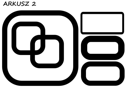 Otrzymujesz zestaw naklejek na trzech arkuszach - arkusz 1, arkusz 2 i arkusz 3. Każdy arkusz może być w innym kolorze.