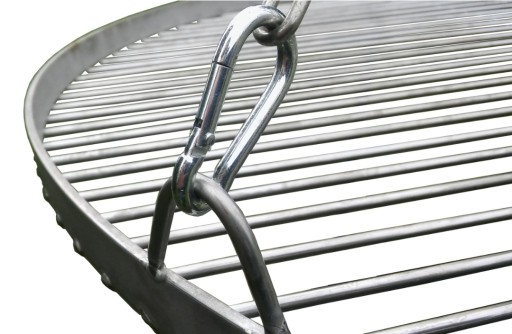Ruszt wykonany z stali nierdzewnej o średnicy 70cm podwójnie wzmacniany. Dzięki takiemu dużemu rusztowi można przygotować posiłek dla bardzo dużego grona przyjaciół i rodzinny. Stal nierdzewna inox z której wykonany jest ruszt dopuszczona jest do kontaktu z żywnością dzięki czemu nie ma potrzeby stosowania dodatkowych tacek.