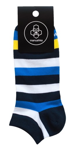 ELECTRIC BLUE STRIPES to stopki z wysokogatunkowej wiskozy bambusowej z płaskim szwem i nieuciskającym ściągaczem. Wiskoza bambusowa, z której wykonane są stopki, zapewnia komfort noszenia oraz daje uczucie chłodu. Dodatkowo charakteryzuje się niezwykle żywymi kolorami. Idealny wybór na lato!