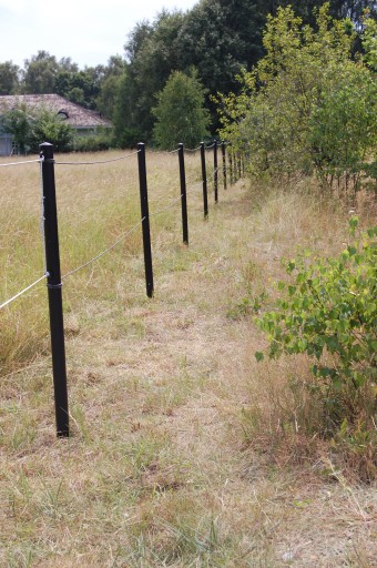 Słupki przeznaczone do linki elektrycznej sprzedawane są oddzielnie na stronie www.equisafe.pl . Wykonane są z HDPE (materiału niemożliwego do złamania). Do wyboru dwa koloru : biały i czarny. Wysokości 1,0m i 1,4m nad ziemię. Wkopywane w ziemię na głębokość 0,4m. Łączna długość słupków to 1,4m i 1,8m. Nie wymagają betonowania. Średnica 65mm. Gwarancja na słupki 10 lat. Zalecany odstęp pomiędzy słupkami to 4m. Można zastosować 2,3 lub 4 piętra linki elektrycznej (jak na zdjęciach).