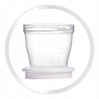 W komplecie z laktatorami elektrycznymi EasyStart oraz manualnym EasyStart znajduje się adaptor, który pasuje do pojemników, dzięki niemu istnieje możliwość odciągania pokarmu bezpośrednio do pojemników.