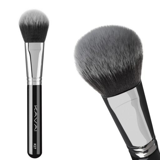 Pędzel podobny do pędzla K26, ale posiada spłaszczoną skuwkę. Przeznaczony do nakładania pudru, różu i bronzera o konsystencji proszku lub kamienia. Sprawdza się w aplikacji wszelkich kosmetyków sypkich, prasowanych, w kamieniu. Bardzo miękkie włosie idealnie przylega do twarzy co ułatwia wykonanie perfekcyjnego makijażu i precyzyjnie wymodeluje kontury twarzy. Pędzel został wykonany z wysokiej jakości dwukolorowego taklonu (syntetycznego włosia wegańskiego). Skuwka srebrna miedziana, rączka czarna drewniana. Dbałość o detale i solidne wykonanie sprawia, że pędzel nie gubi włosia, jest elegancki i łatwy w utrzymaniu czystości.