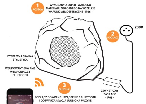 Umilenie czasu spędzonego w ogrodzie dźwiękami ulubionej muzyki nigdy nie było prostsze dzięki głośnikowi Rock Sound Bluetooth firmy Lithe Audio, który uruchomisz w kilka minut - szybko i łatwo. Głośnik Rock Bluetooth to naprawdę wyjątkowy produkt, z którego będziesz korzystać za każdym razem, gdy wejdziesz do ogrodu Parowanie głośnika z dowolnym urządzeniem zewnętrznym jest również bardzo proste i intuicyjne, wymaga jedynie uaktywnienia funkcji bluetooth a następnie wpisaniu kodu PIN: "1234". - nie wymaga obsługi żadnej zewnętrznej aplikacji. Głośnik dostępny jest również w wersji z głośnikiem pasywnym - zestaw dedykowany do dla większych ogrodów/tarasów.