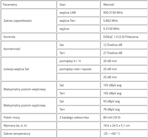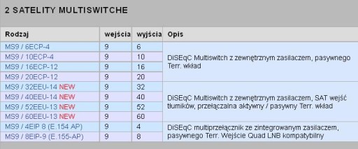 - przeznaczone głównie dla instalacji multiswitchowych przy uzyciu LNB Quattro