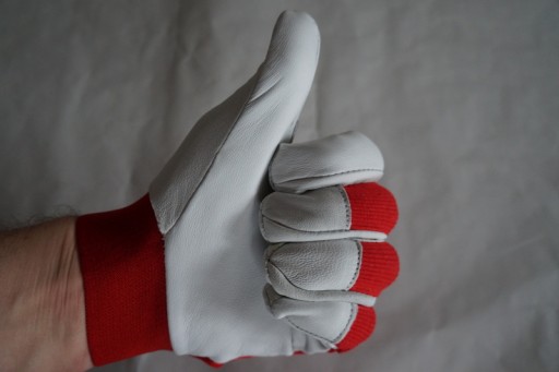 Rękawice ochronne wykonane z elastycznej dzianiny, wzmacniane bardzo dobrej jakości skórą kozią, zakończone ściągaczem na rzep.